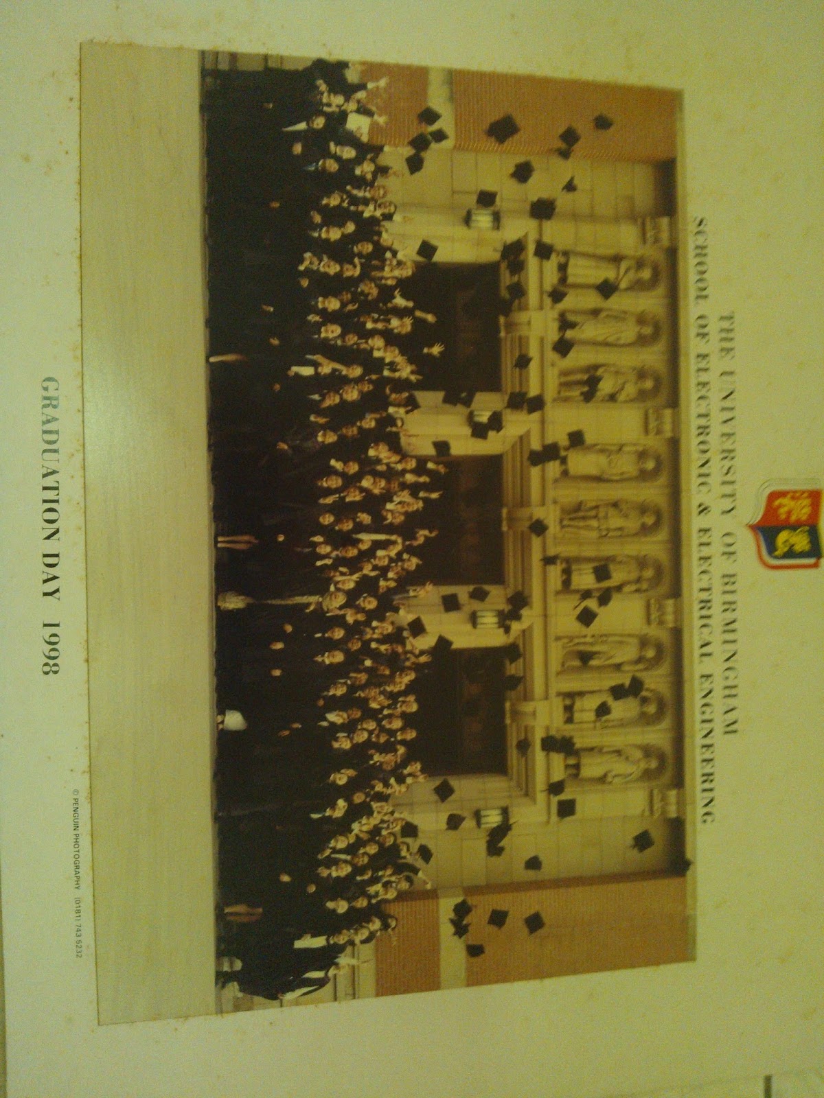 Graduation photographs (Group Photograph of Electronic and Electrical and Communications Engineering Class of 1998 ) of the University of Birmingham, Birmingham, United Kingdom . I'm on the 2nd row from the top, from the right of the picture, the 4th person, Mr. Junt Hoong Chan or Mr. Chan Junt Hoong or Mr. J Chan with BEng 3rd Class Honours in Electronic and Electrical Engineering