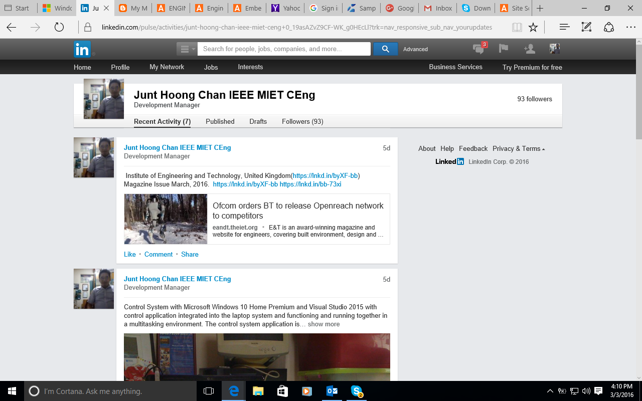 My(Junt Hoong Chan) LinkedIn Updates on my LinkedIn Page are as below. Please click on the link to follow on to the updates from my office, Engineering and Computer Works.