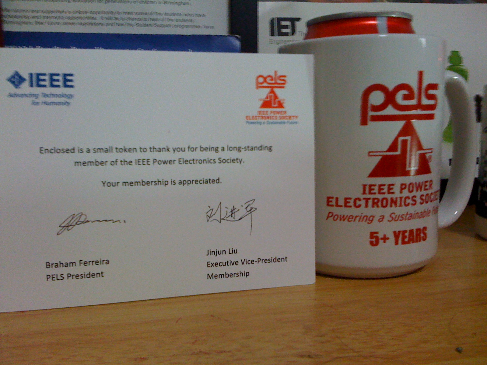 IEEE token for Junt Hoong Chan for 5 years of Power Electronics Society Membership from IEEE.