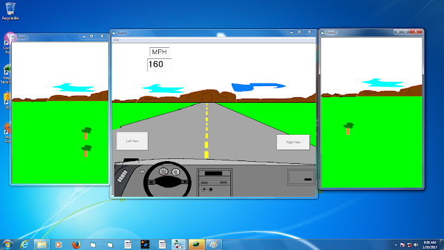 EngineeeringComputerWorks.com driving simulation with right windows, front view and left window view. Currently the simulation is under prototyping. The simulation is able to be controlled by EngineeeringComputerWorks.com Control System and can be modified for mouse control.